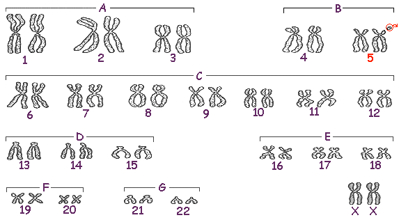 Translocation means that there is already a loss of the short arm of the fifth chromosome present at a parent. However this "broken off" part has fastened itself to another chromosome so that no symptoms of the CDC are present at the parent. With translocation the risk of a repetition is 50% or more.