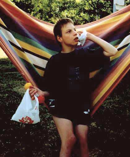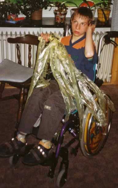 einen Gehtrainer mit dem er sich alleine fortbewegen kann. Er genießt