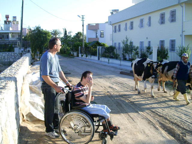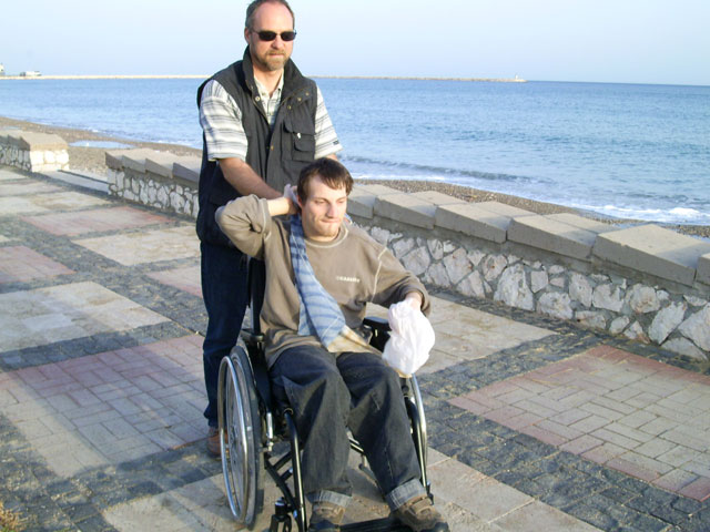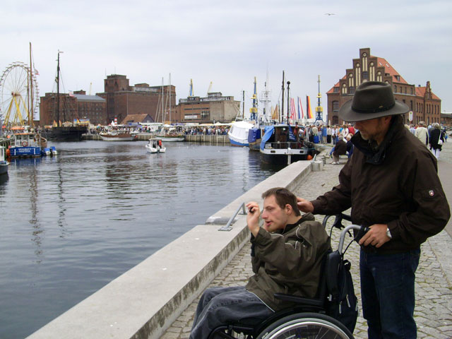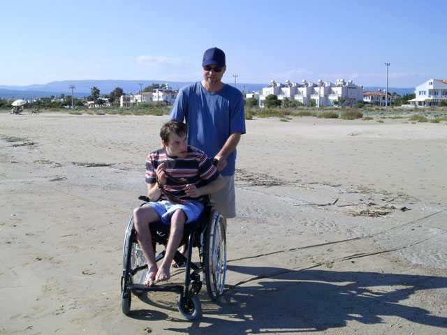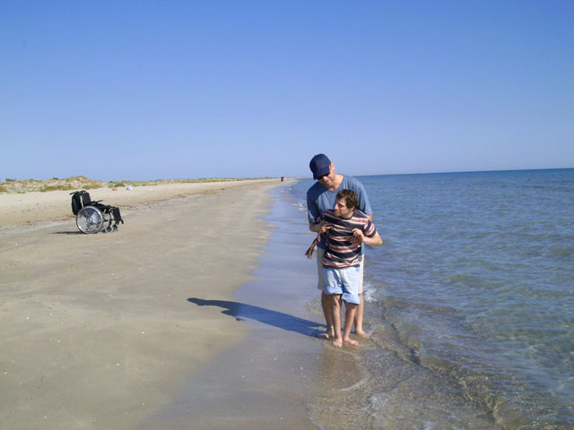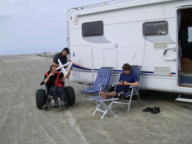 Rollstuhl. Die rollen sogar auf weichem Sand super
